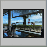 Gun and I 'made camp' inside, and at the rear of, the upper deck saloon/cabin, with bench seats around the outside, and three tables in front of them, in the shape of a "U".