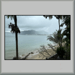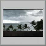 The day started sunny and warm, with a gentle sea breeze. So, being another "Do Nothing" day, it would be ideal (after breakfast) to sit in the shade of one of the trees outside the Rim Talay restaurant, alongside the water's edge; which I did at about 08h30. However, compare the then weather conditions, to thirty minutes later; see Photo TH-140, taken from my hotel room balcony!