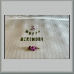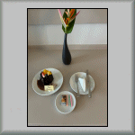 Upon returning to my room, I was overcome with emotion! I was greeted with the following surprise: a birthday greeting laid out on the bed (see Photo TH-138 and Photo TH-139), plus a small gateau; see Photo TH-143. Admitedly, it read "Happy Honeymoon", but the thought was immense!