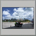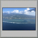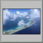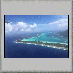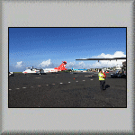 I was woken up at 05h10 by the sound of the air conditioning in the cabin. Hooray! Something is working! Approximately one hour later, it stopped, but was replaced by the sound of the vessel's engines; were they being tested, or were we going to leave port? Well,... ...The noise was probably a test, because after breakfast, we were told to pack our belongings in readiness for a flight to Rangiroa! When the time arrived for us to 'walk the plank', our suitcases were loaded into the two people carriers, and we were taken to the airport. I presume the flight services between the islands are comparable to local bus services! While waiting to be checked in, it was interesting to look at what some passengers were checking-in as luggage; for example, open cardboard boxes, which had to be sealed! Was it because it was Christmas? Probably. The flight to Rangiroa went via Bora Bora! Wow! I had heard about the island paradise, but I never thought I would actually visit it! Check-in for the flight was a bit chaotic for all seventeen of us, but we all got through to the departure lounge. When it was time to board, we walked to the aircraft, as it was parked close to the airport building (Photo PF-014). There was no seat allocation. Like buses, it was free seating - sit where you want! The flight to Rangiroa passed to the south of the island of Mo'orea (Photo PF-015 and Photo PF-016) and continued in a north-westerly direction to Bora Bora. About thirty minutes after taking off from Tahiti, we landed at Bora Bora! As the aircraft needed to be refuelled, all passengers flying on to Rangiroa were required to disembark and walk to the (small) airport building. There were no custom formalities (having no international flights in or out), so I decided to go walkabout. A few metres through the building and I found myself standing on the side of the port (Photo PF-017 and Photo PF-018). Feeling hungry, I went back into the building and bought a slice of banana cake and a drink, at the refreshment kiosk. However, unknown to me, the refuelling of the aircraft had finished and boarding was underway. Unfortunately, I only had time to have one bite of the cake (and no drink!) when I heard my name (and two others) over the building's public address system, requesting we boarded! After we landed at Rangiroa airport and were inside the airport building, we seventeen were greated with a flower garland placed over our heads (a first for me!) by a member of staff from our destination hotel. Outside, we were directed to vehicles to transport us to Hotel Kia Ora Resort and Spa. At the hotel, I was directed to Beach Bungalow 56. Frank was already in the dwelling. Inside, I was shocked to discover that there were no single beds, but a double bed! We hastlity went back to the Reception to complain. We were told that there was no other (cheaper) accommodation available. Frank asked the receptionist for the cost of an upgrade. He was told it would cost over 600 U.S. Dollars - per night! He rightly refused. The hotel's solution was to 'convert' the sofa into a single bed (with a sheet and pillow)! Frank had already placed his belongings on the bed, so my only option was to have the newly-made bed (sofa). With the accommodation finally sorted out, I had to record the sea view from the bungalow (see Video PF-003). Once established in our hotel rooms, we prepared and changed for an afternoon dive. During the dive, I saw a shark and a Napoleon Wrasse. On our return to the hotel, dolphins were seen, playing in the waves behind the zodiac; amazing! Once dinner had finished, I returned to the bungalow and was in bed (on the sofa!) and asleep soon after 21h00; it had been an exhausting day!  |