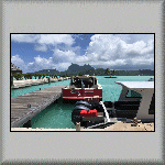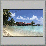 Although the early morning wake-up call was at 06h30, I awoke at 05h10! I was showered and packed in time for breakfast at 06h45. I didn't have much for breakfast as my stomach was not feeling right; I wonder if it was 'churning over' at the thought of what awaited me ashore! The first group left at 07h40, as they had to be at the airport for a flight to Papeete. As I was staying locally for a couple more days, my departure time was 08h05, with a planned pick-up time of 08h15 from the port. My pick-up eventually arrived at 08h40. As usual, I found it very emotional saying goodbye. Bruce and Frank both said "At least it shows you have a heart!" I felt even worse when it came to my actual departure: Buz provided a very nice jesture (and support) by accompanying me in the zodia to the port. How many times have I said before: "I hate Goodbyes!" I arrived at Pension VekeVeke at about 09h00 and shown to Bungalow 3 (named Tenga Tenga). I am pleased that I could understand French, as I was given a lot of information - admitedly, too much to absorb in one go - except that dinner was at 19h00! One of my first views was of the lagoon in front of the bungalow. It looked so inviting that I quickly changed and went snorkelling! The water wasn't very deep; approximately thigh depth (70 to 80 cms, depending how tall one is!). The bungalow was basic (nothing luxurious), but functional - with a private shower and toilet, and two beds (one double and one single). Any cooling was provided by a fan. Despite the accommodation being basic, the view from the front of the bungalow more than compensated it; it was idyllic, out of this world! Lunch was at a nearby 'snack bar'. Again, I wasn't particularly hungry, but thirsty; a 1.5 litre bottle of chilled water cost 300 XPF (€2.50). I had another snorkelling session at 16h00 in the shallows, when the sun wasn't as strong; see Video PF-019. I discovered that the 6"/15 cm photo balloon dome gave me more trouble than pleasure; it was too buoyant and took some effort to control it in producing a steady underwater video recording. I gave up with it and decided to leave it behind for the next guest! [It would also free-up some valuable space in my suitcase!] Evening dinner was exactly at 19h00. The Starter was a fresh tuna salad; the main course was a fish steak and mashed vegetables, and the dessert was a homemade pineapple cake with cream - yummy! I sat with a family of five. During the day, I thought they were perhaps American (as English was spoken). Then I changed my thoughts to perhaps French (as French was also spoken)! It turned out that it was a French family, holidaying in French Polynesia, living in California! On my way back to the bungalow, six Nurse Sharks were seen in the shallow water beside the restaurant, presumably waiting for food! I finally retired at 20h30 and used the single bed, as the double bed was too soft and very uncomfortable!  |