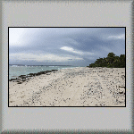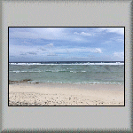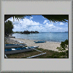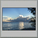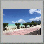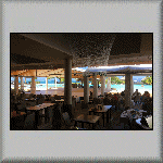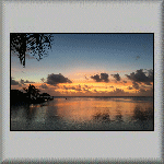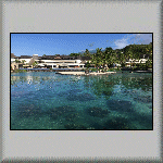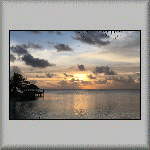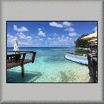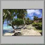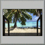 The overnight temperature was 28°C, which caused me to have a wrestless night's sleep. At 08h00, I was about to go for breakfast when it started raining very heavily, but it was all finished by 08h15. I had another continental breakfast, comprising bread, butter, confiture d'ananas (pineapple) and fruit juice. My plan for to-day was to do nothing - a totally relaxation day in the tropics, which included watching a flock of birds in the middle of the lagoon, feeding on a shoal of fish (which was obviously close to the surface)! Other activities included having a few power naps, sitting on the veranda and watching the world go by, walking across to the ocean side of the atoll, walking to and sitting under the canopy on the jetty, and purchasing more water from the snack bar. All very exciting! The evening's dinner was another tuna salad, followed by a tuna steak, and a dessert of sorbet with fresh fruit. I also had an entertaining time talking to the French family - both in French and English (and Franglais!).  |