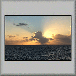 I awoke with a tightness across my chest! I felt that with a BCD on, I might have restrictions in breathing properly, so I declined the 06h00 dive. Besides, I still felt tired. At breakfast, I informed Marc that I did not wish to take part in any of to-day's dives; our last diving day. I stayed on board, enjoying the company of the other non-divers. Rain (a member of the crew) said she will let me know when she was going to feed the sharks. That is why they were congregating alongside the side of the vessel - they were waiting for food; see Video PF-018. After preparing the next meal in the galley, Rain threw the waste fruit skins and other perishable offcuts into the water. When all dives had finished and we were on our way back to Rotorava, it was cocktail time on the upper deck, where group photos were taken, and a glorious sunset was observed; see Photo PF-057. After dinner, it was back to our cabins to pack - again!  |