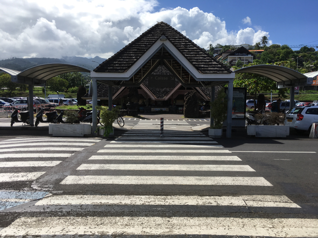 Photo PF-006: The airport's public car park, as seen from the airport building,with the Tahiti Airport Motel on the hill to the right (19-Dec-2018; 09h07)