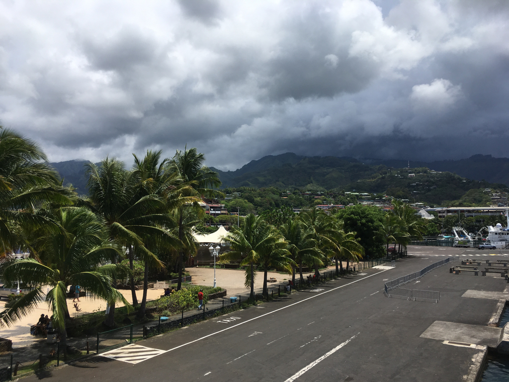Photo PF-009: "At the Quayside"Southern end of the Place Vai'ete Park and Garden, in Papeete, taken from on board the French Polynesia Master (19-Dec-2018; 12h36)