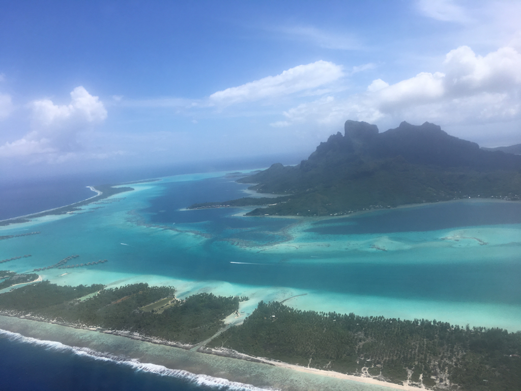 Photo PF-026: Goodbye Bora Bora, and Mont Otemanu and the twin peaks of Mont Pahia (22-Dec-2018; 13h32)