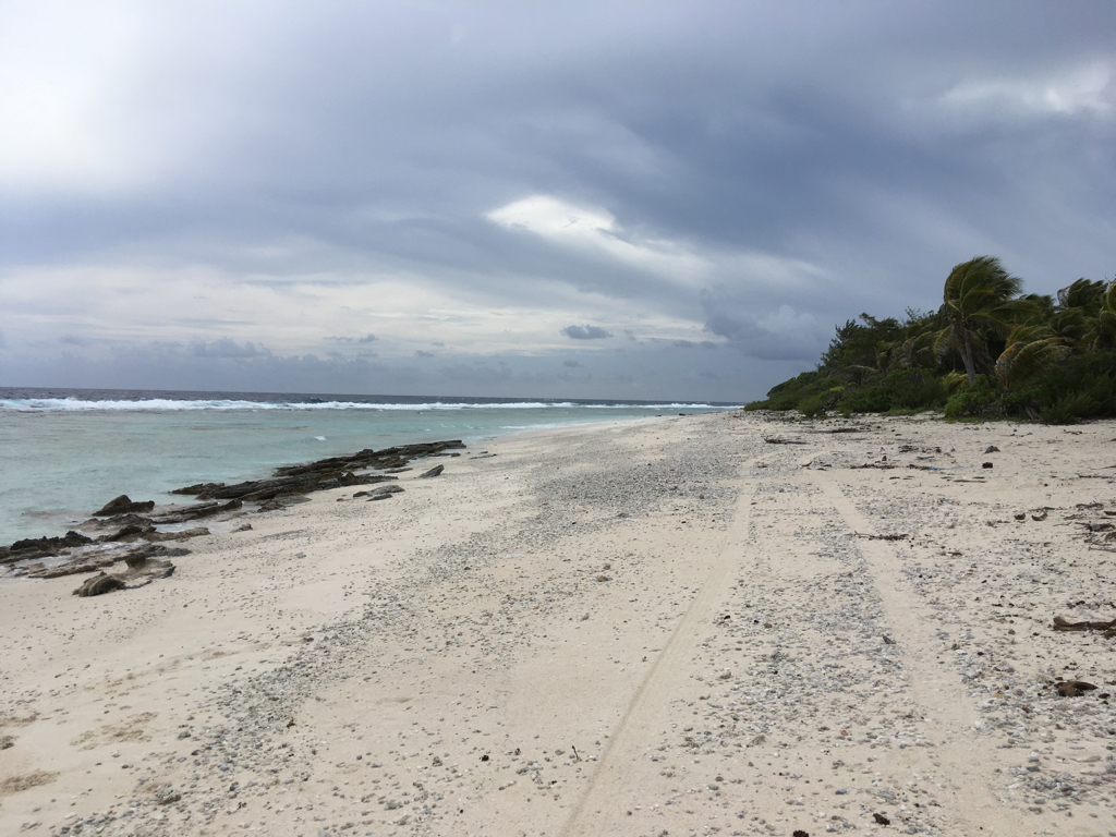 Photo PF-044: Looking south-east along a plastic-free beach, on the northern coast of Rangiroa Atoll (25-Dec-2018; 09h05)
