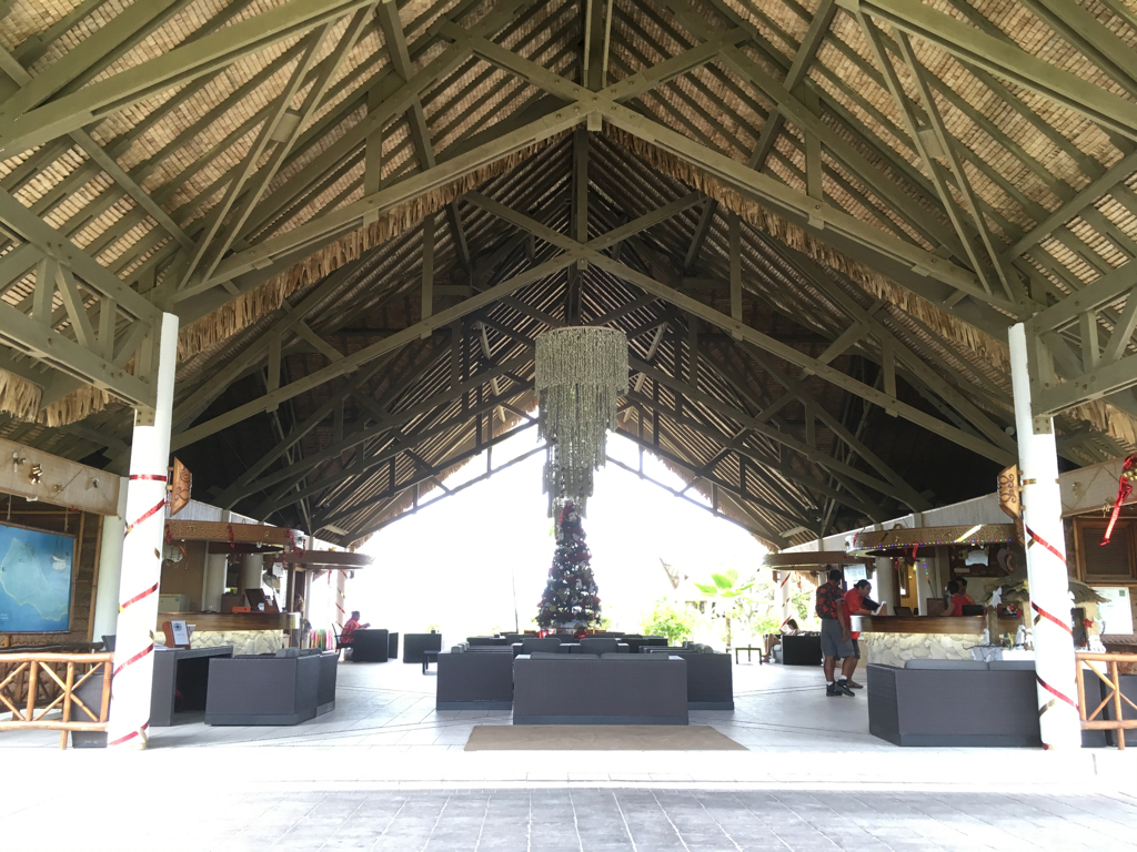 Photo PF-049: The main reception area of the Hotel Kia Ora and Spa, with the Reception desk on the right-hand side (25-Dec-2018; 09h11)