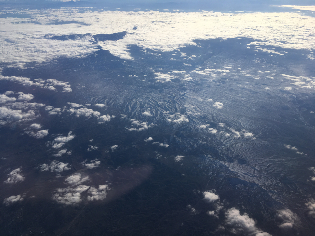 Photo PF-090: Mount Lemmon, from an altitude of 10,000 metres with Tucson, Arizona, under the large cloud mass (02-Jan-2019; 14h47)